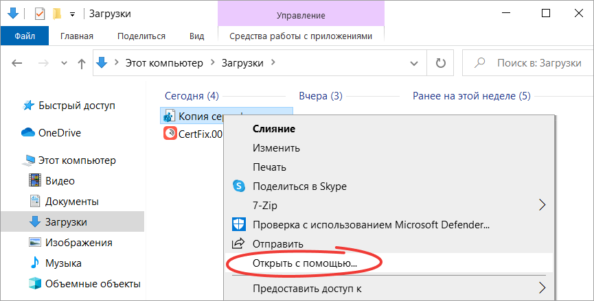 - Скопируйте файл на тот компьютер, на котором будете работать с электронной подписью.