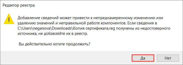 - Снова нажмите на файл правой кнопкой мыши и выберите «Открыть с помощью» → «Редактор реестра». В появившемся окне нажмите «Да».