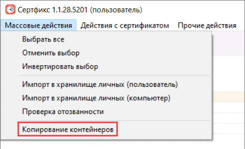 Сертификаты КЭП для ЕГАИС, а также выданные УЦ Казначейства или ФНС, скопировать нельзя.