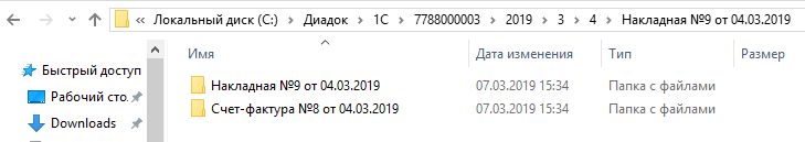 Если у вас клиент-серверный режим работы 1С (где клиентская часть установлена на компьютере пользователя, а серверная часть — на другом компьютере) и документы нужно скачивать на компьютер пользователя, укажите полный сетевой путь до нужной папки. Иначе файлы могут скачиваться в локальную папку на сервере 1С.