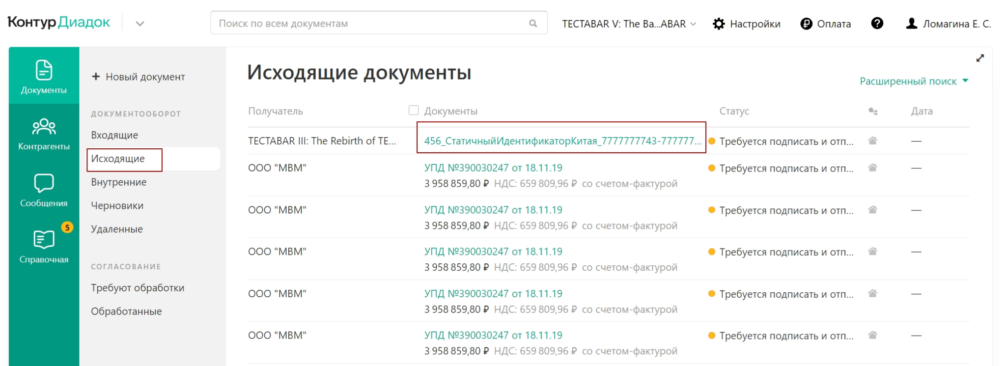 После подписания документа интеграционное решение Контура передаст документ, вашу подпись к нему и печатную форму документа китайскому оператору ЭДО и ваш китайский контрагент уже в интерфейсе китайского оператора ЭДО увидит подписанный вами документ.