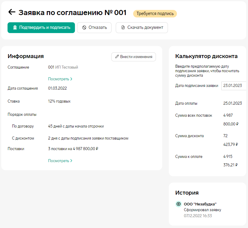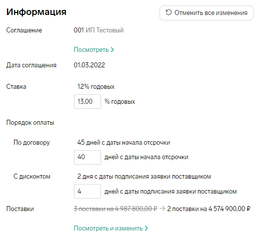 Предыдущие условия, как и подпись другой стороны, станут неактуальными, а заявка останется в статусе «Требуется подпись».
