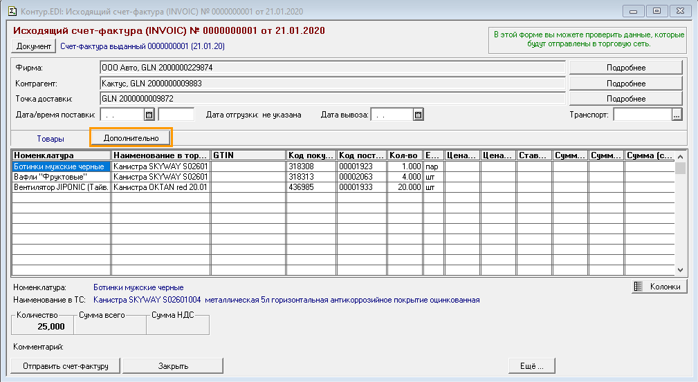 - Создайте счет-фактуру из реализации товаров и проведите его.