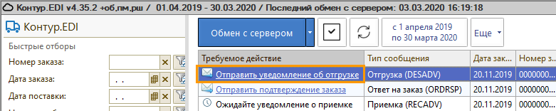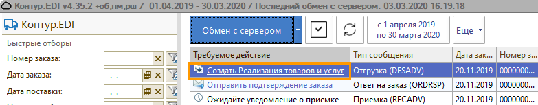 Сформируйте подтверждение заказа сети (сообщение ORDRSP) и откройте карточку ORDRSP. - Либо сформируйте сообщение DESADV.