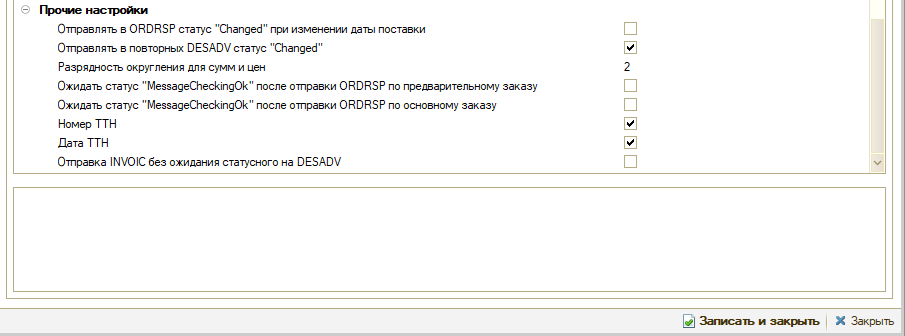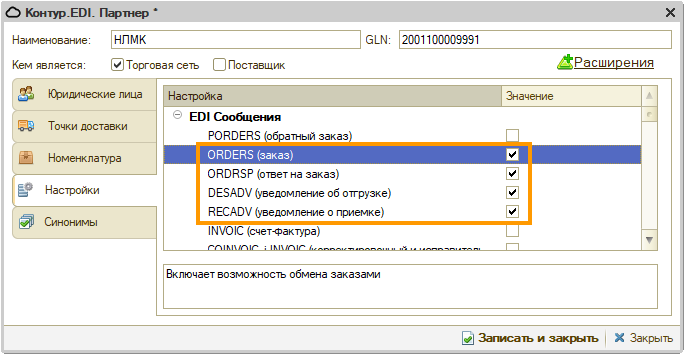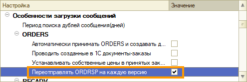 - Особенности загрузки сообщений → ORDERS: Переотправлять ORDRSP на каждую версию