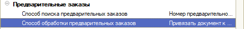 - Способ обработки предварительных заказов — Привязать документ к основному заказу