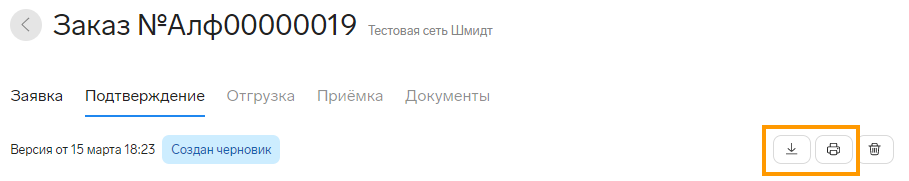 — для печати заказа. Откроется документ в формате PDF. Документ можно отправить на печать стандартными средствами программы, в которой он открылся.