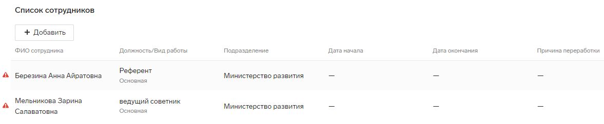 - Под списком сотрудников нажмите «+ Добавить».