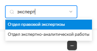 Напишите ФИО сотрудника или название подразделения и выберите подходящее значение из раскрывающегося списка.