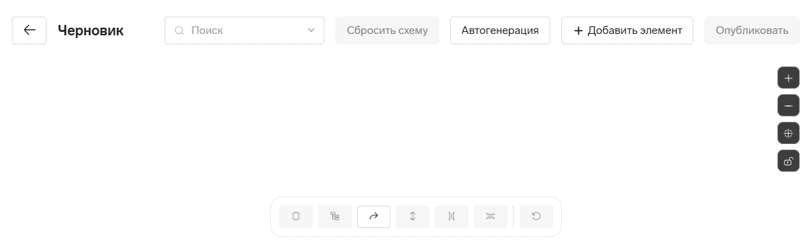 Появится схема, аналогичная созданной в режиме «Автоматическая схема». Здесь внизу тоже будет панель с настройками. Они будут доступны только до внесения ручных изменений в схему (перемещение, изменение или удаление плитки). После ручных изменений будет доступна только настройка «Тип линий».