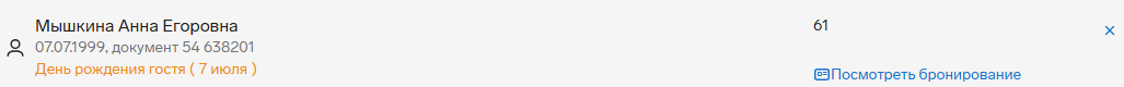 При наведении на строку с фамилией гостя появляется ссылка «Посмотреть бронирование».