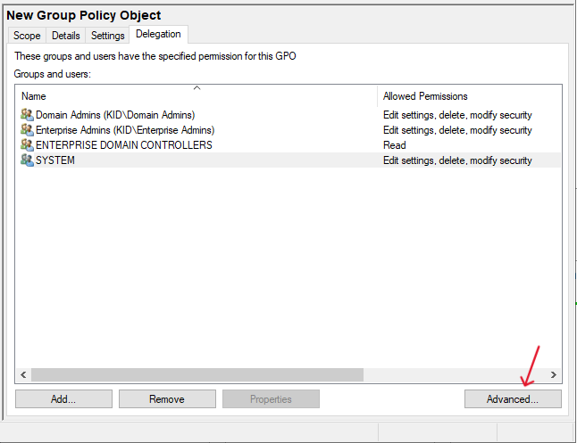 - Перейдите в раздел «Delegation» и нажмите «Advanced…».