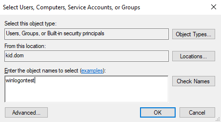 - Укажите имя объекта, для которого нужно применить политику. В примере объектом выступает конкретный компьютер. Нажмите «Object Types…» для выбора компьютера.