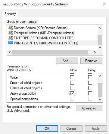 - Выбранный компьютер отобразится в разделе «Security Filtering».
