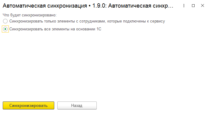 Выберите, что нужно синхронизировать. Можно перенести всю структуру либо синхронизовать элементы только по подключенным сотрудникам.