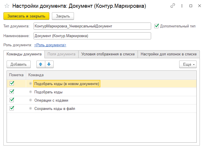 - Укажите наименование «Документ (Контур.Маркировка)».