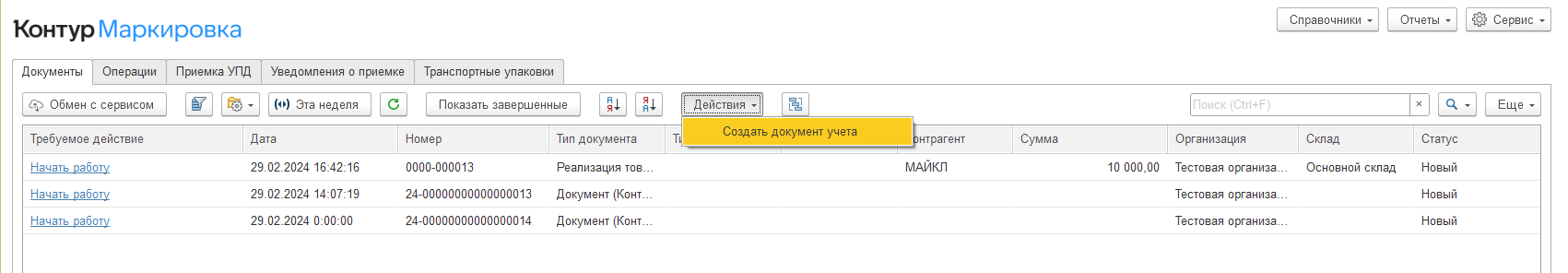- На главной форме модуля нажмите кнопку «Создать документ учета».
