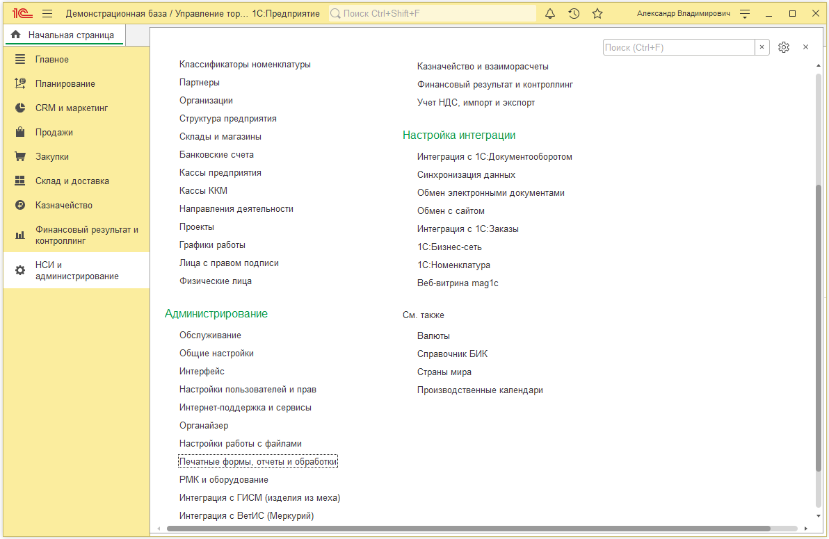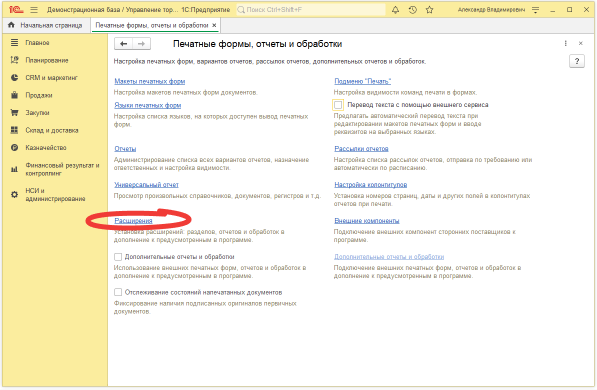 Далее зайдите в раздел «Печатные формы, отчеты и обработки».