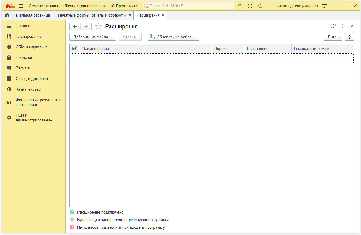 Для установки расширения перейдите в раздел «НСИ и Администрирование».