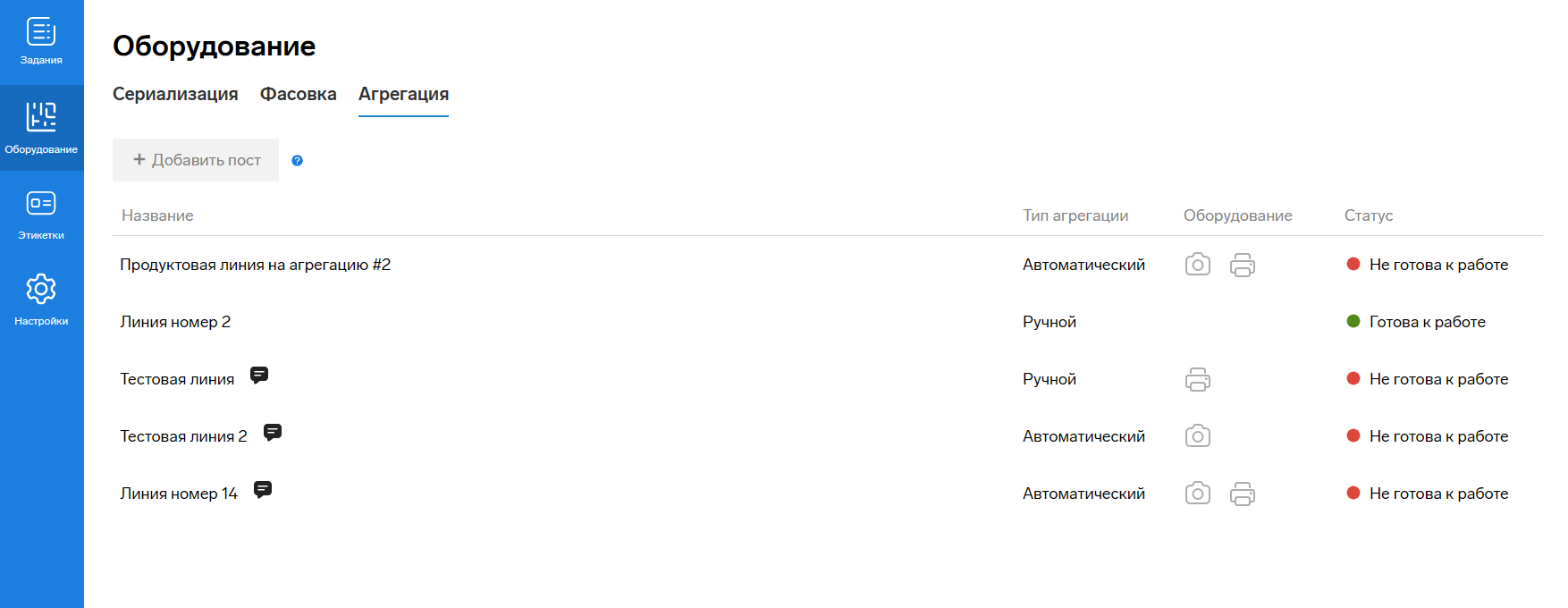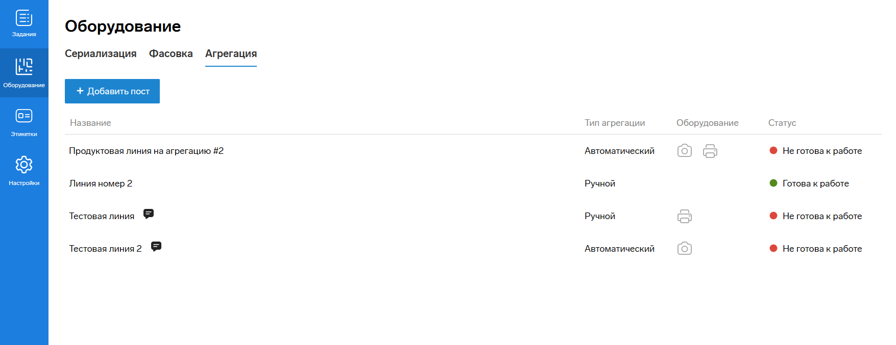 Если кнопка «+ Добавить пост» неактивна, то это означает, что было достигнуто максимальное количество постов. Обратитесь к администратору Маркировки вашей компании, либо удалите ненужные. - В окне добавления поста агрегации: