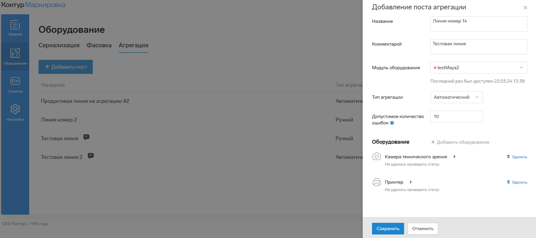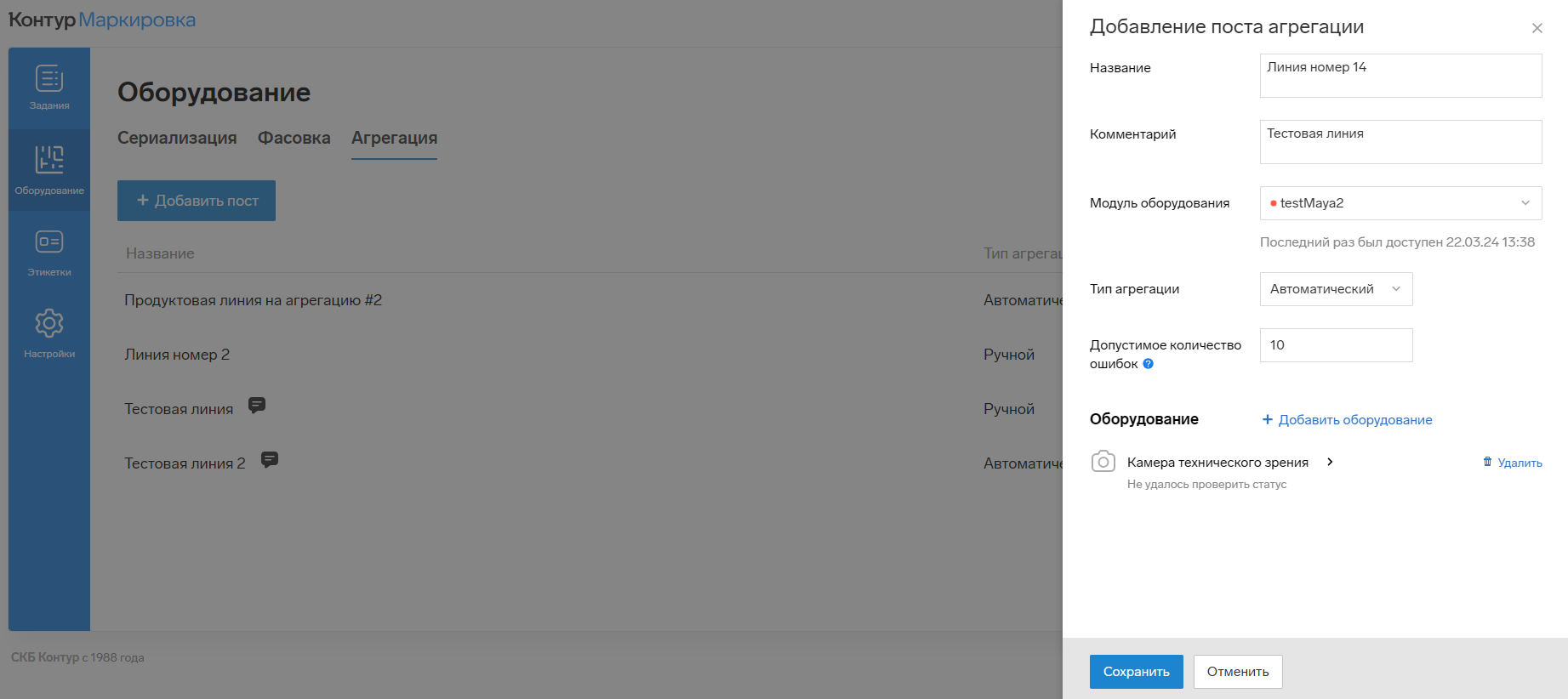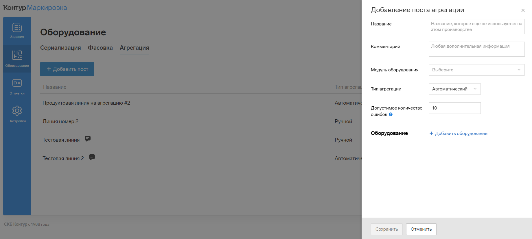 После проверки нажмите на кнопку «Сохранить». - Затем добавьте следующее оборудование с помощью кнопки «+ Добавить оборудование».