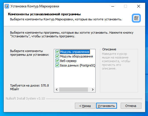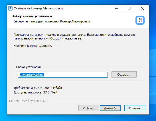 На шаге «Выбор папки установки» не менять путь, оставить какой есть: «C:\KonturMarking».