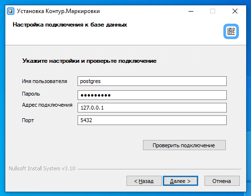 Порт - 5432 - Чтобы убедится, что подключение произойдет верно, нажмите кнопку «Проверить подключение».