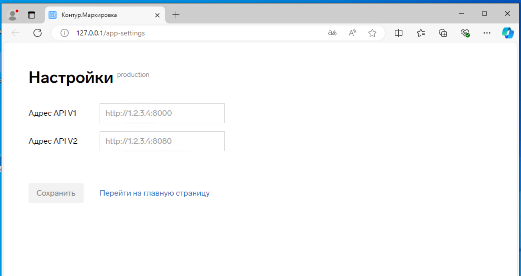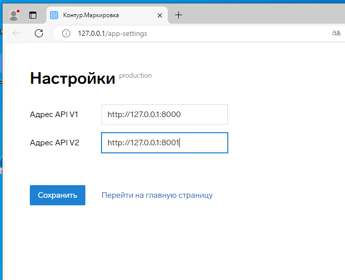 поле «Адрес API V2» - http://127.0.0.1:8001 - Нажмите «Сохранить», а затем «Перейти на главную страницу».