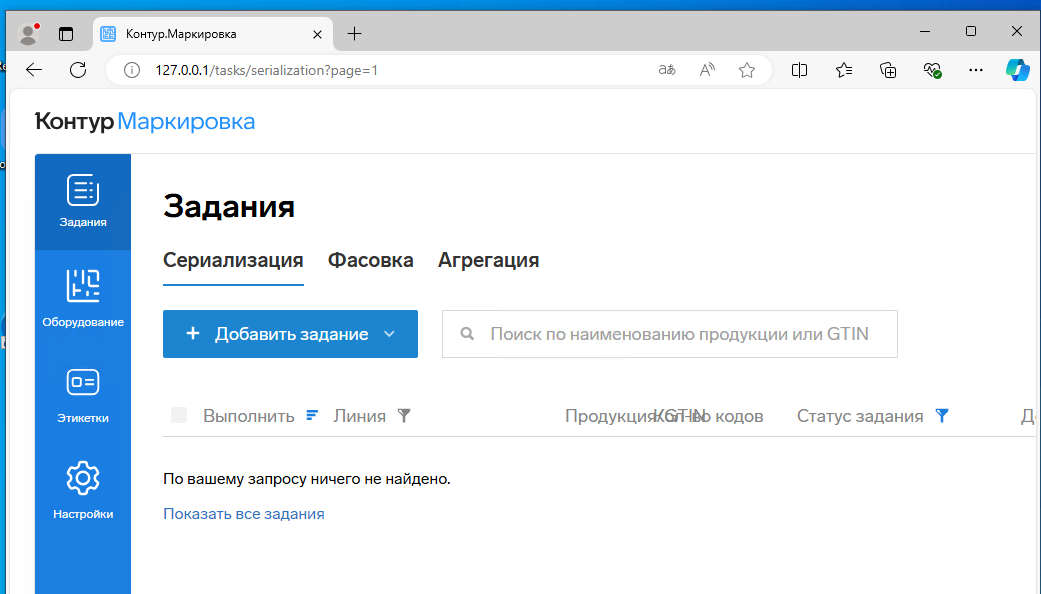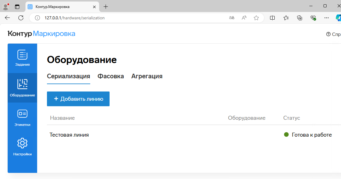 - Если все выполнено успешно, откроется СУЛ. Выглядеть страница будет так (некоторые вкладки, например, «Фасовка» могут быть не активными, доступность вкладок зависит от лицензии).