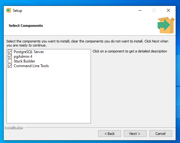 Эта программа нужна для хранения данных, которые создаются в программе СУЛ. - В окне выбора компонентов PostgreSQL ничего менять не требуется. Должно быть так: