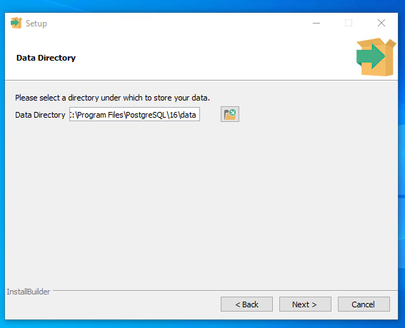 По дефолту путь такой: C:\Program Files\PostgreSQL\16\data - В окне выбора пароля для пользователя PostgreSQL уже заполнены поля значением - password#.