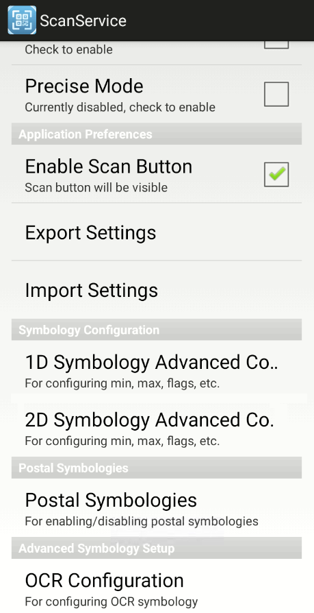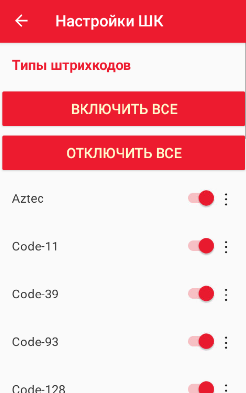 - Затем вернитесь в основное меню, перейдите в «Типы штрихкодов» и нажмите кнопку «Включить все».