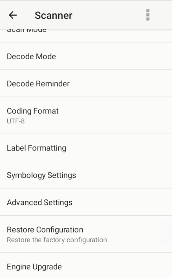 Перед началом настройки рекомендуется сделать сброс конфигурации профиля. Это необходимо, чтобы исключить какие-либо ненужные настройки, которые могут быть установлены на ТСД. Для этого используйте пункт «Restore Configuration».