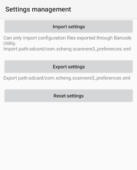 Перед началом настройки рекомендуется сделать сброс конфигурации профиля. Это необходимо, чтобы исключить какие-либо ненужные настройки, которые могут быть установлены на ТСД. Для этого откройте Settings management и нажмите «Reset settings».
