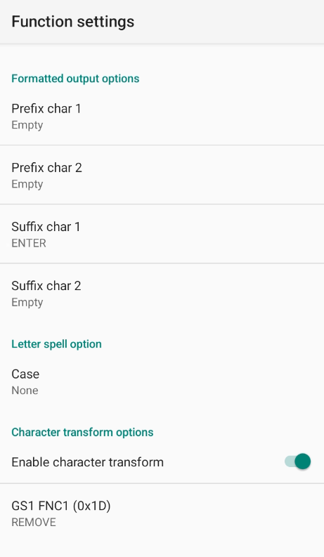 GS1 FNC1 (0x1D) — выберите значение «REMOVE».