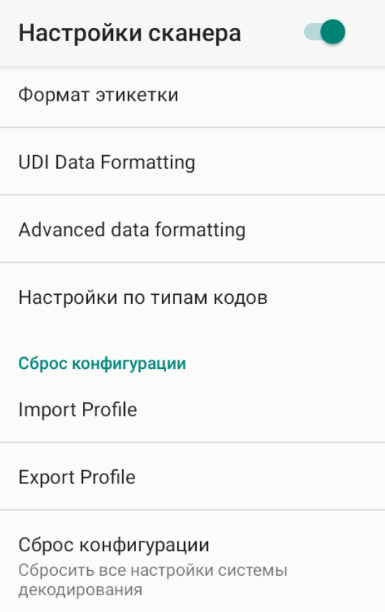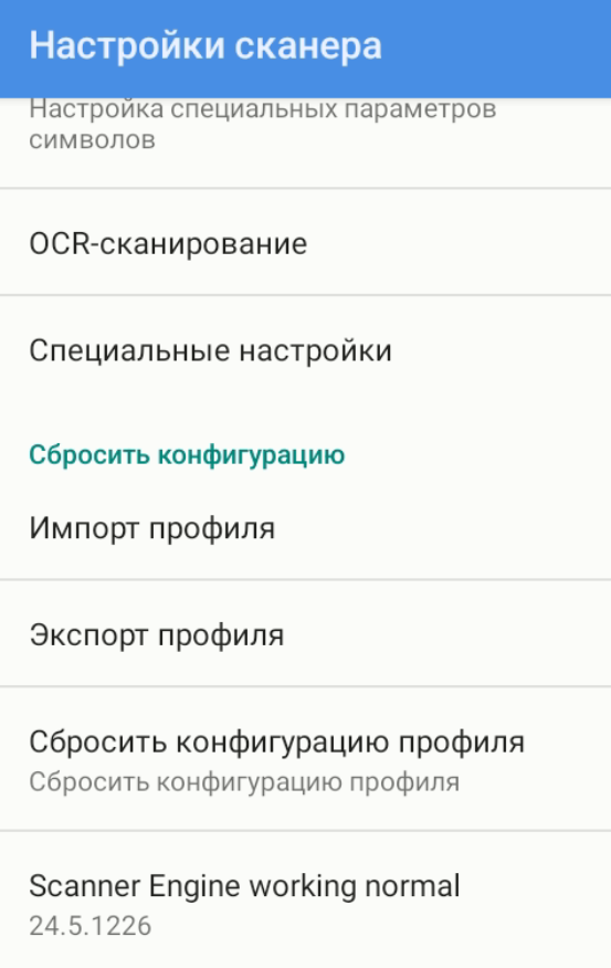 - Перед началом настройки рекомендуется сделать сброс конфигурации профиля. Это необходимо, чтобы исключить какие-либо ненужные настройки, которые могут быть установлены на ТСД.