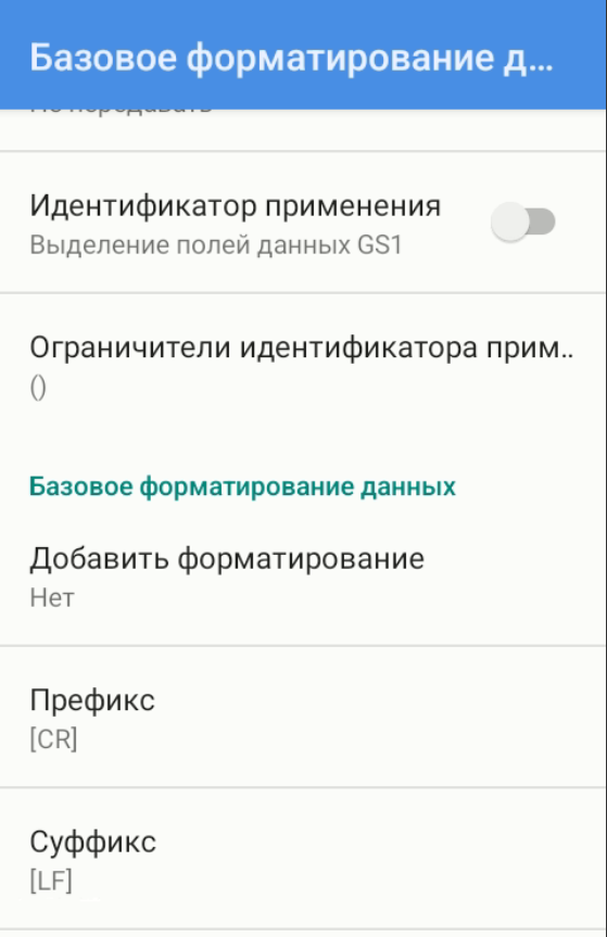 Символ Action Key: «Перевод строки». - Вернитесь обратно в первое меню, откройте «Базовое форматирование данных», далее установите следующие значения: