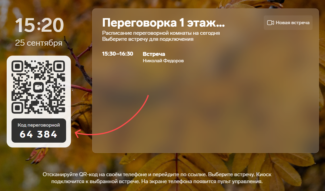 - Чтобы подключить киоск к встрече, нажмите на значок