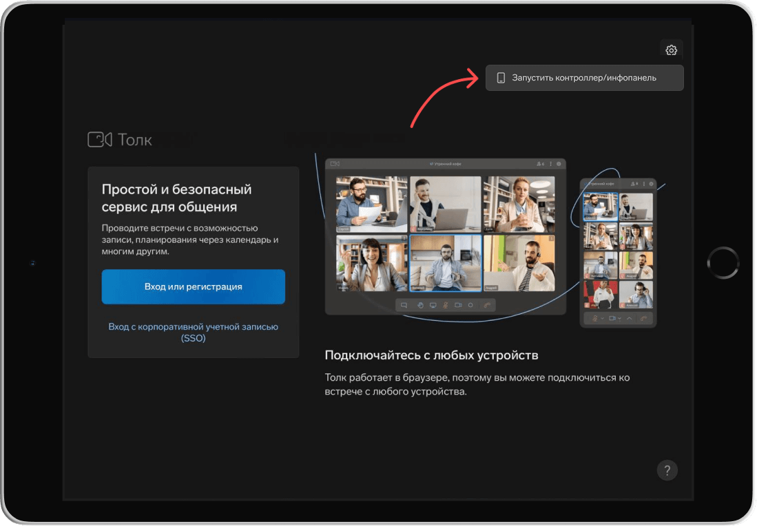 Толк позволяет использовать разные устройства в качестве панели инструментов для участия во встрече.