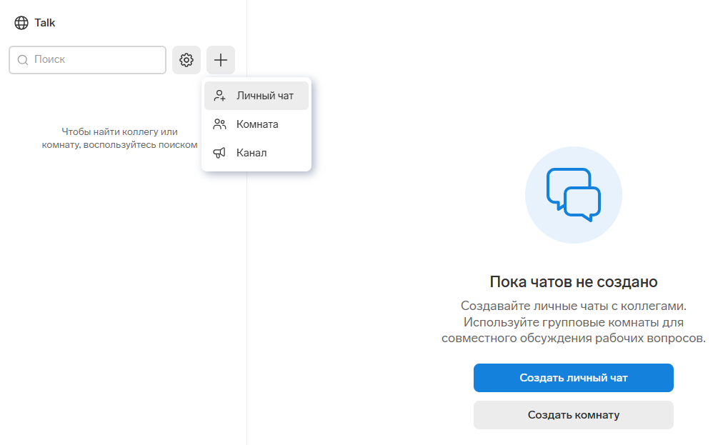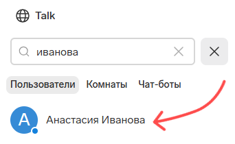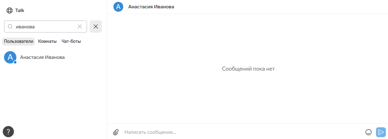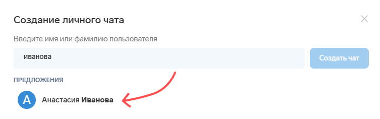 Начать чат можно только с теми пользователями вашего пространства, которые имеют доступ к Толк.Чатам.
