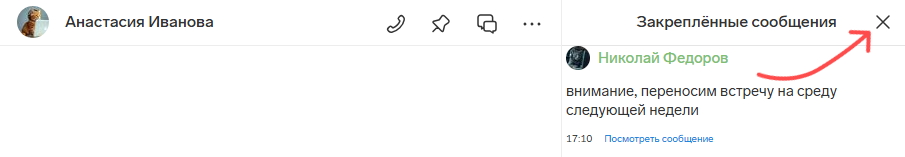 Для открепления наведите курсор на фамилию и имя автора сообщения и нажмите значок .