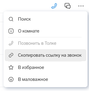 - Можно отправить ссылку на звонок, если собеседник пропустил уведомление или не смог подключиться. Для этого нажмите → «Скопировать ссылку на звонок».