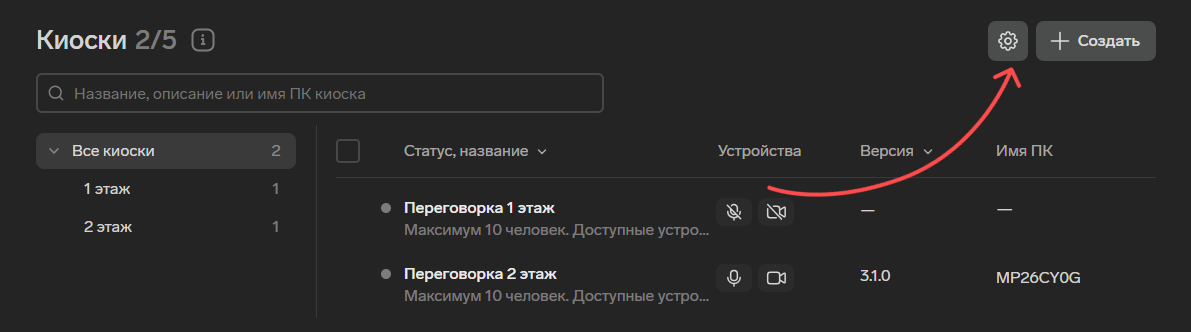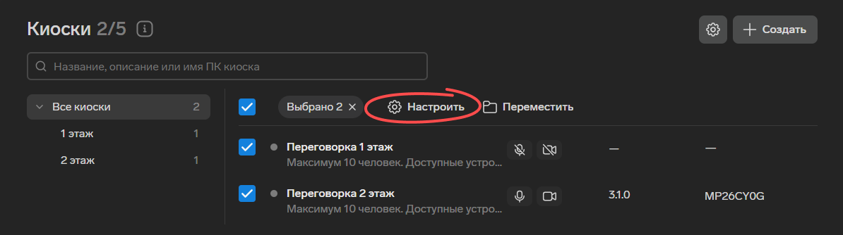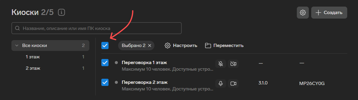 - На вкладке с киосками отметьте нужные киоски или все существующие.