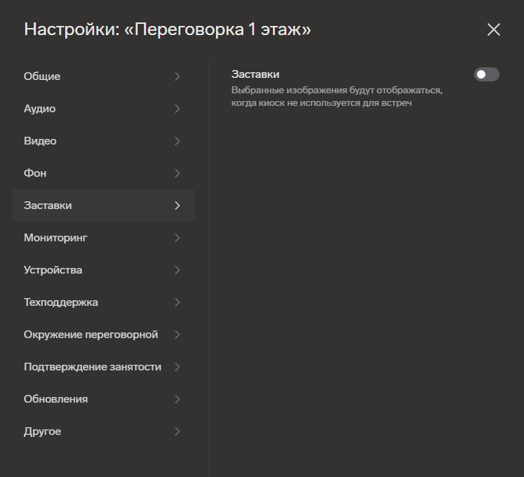 - Установите время отсутствия активности вне встреч, после которого нужно начать показывать заставки на этом киоске.